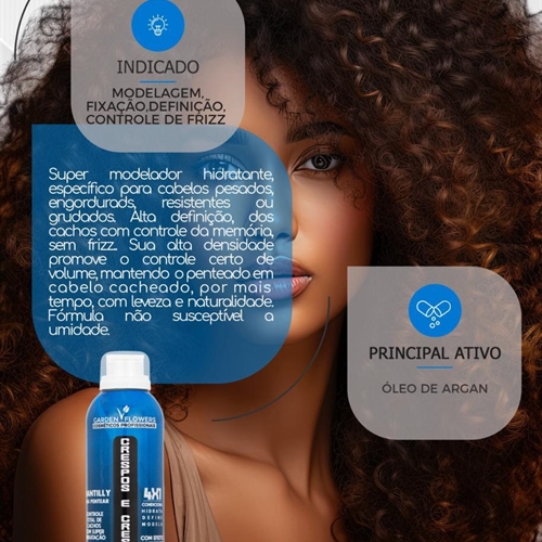 CRESPOS E CRESPÍSSIMOS -> 260mlINDICADO -> Modelagem, fixação, definição, controle de Frizz. Super modelador hidratante específico para cabelos pesados engordurados, resistentes ou grudados. Alta definição dos cachos com controle da memória, sem frizz. Sua alta densidade promove o controle certo de volume, mantendo o penteado em cabelo cacheado, por amis tempo, com leveza e naturalidade. Fórmula não suscetível a umidade. i Principal Ativo: Óleo de Argan